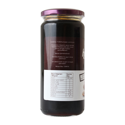 %100 hurmadan üretilmiştir.Ürünlerimiz, meyvenin vakum altında koyulaştırılmasıyla elde edilir, kıvam arttırıcı ve katkı maddesi içermektedir.
