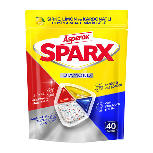 Sparx Bulaşık Makinesi Kapsülü, bulaşıkları sıradan bir temizlik ürününden öteye taşır. Zorlu yemek lekelerini, inatçı yağları ve kalıntıları etkili bir şekilde çözer.