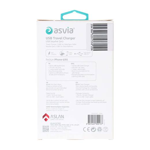Orjinal Asvia şarj cihazı adaptör & şarj kablosu, Cihazınızı kolay ve hızlı şarj etmek için yeni teknoloji aşırı ısınma ve devre koruması ile korur. 100-240 V AC giriş, 1 metre kablo uzunluğu , Aşırı ısınma ve kısa devre koruması Light-USB şarj cihazı ve kablosu, Apple,Ipad,Iphone 5,5S,6,6S,7,X telefon&tabletlere uyumludur.