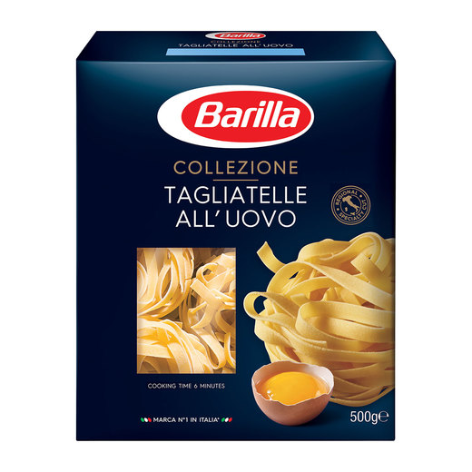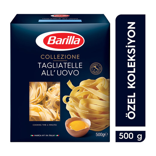 Barilla Collezione serisi, makarnayı gurme bir tabağa dönüştürür. Bronz kalıpla üretilen Barilla Collezione serisinden Tagliatelle mükemmel sos tutuş özelliğine sahiptir. Barilla Tagliatelle 6 dakikada hazır olur.