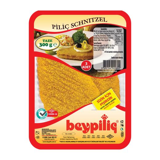 Beypiliç schnitzel sizin için pişirdik ısıtıp servis ediniz.