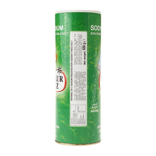Rafine edilmiş deniz tuzundan iyot ilave edilmeden üretilir. Hipertansiyon ve kalp hastalıklarında sodyum tüketiminin azaltılması tavsiye edilir.Karton tuzluk üzerindeki kapak sayesinde akış miktarı ayarlanabilir.