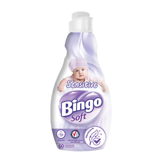 Hipoalerjenik Bingo Soft,çamaşırlarınızı sadece yumuşatmakla kalmıyor ARTI,efsane bebek kokusuyla sizi hatırladığınız, o en saf, en temiz günlere, çocukluğun ve anne sevgisinin sonsuzluğuna götürüyor.