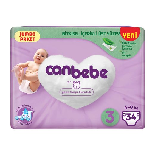 CANBEBE Canbebe Bebek Bezi Jumbo Midi 34'lü 3 Beden