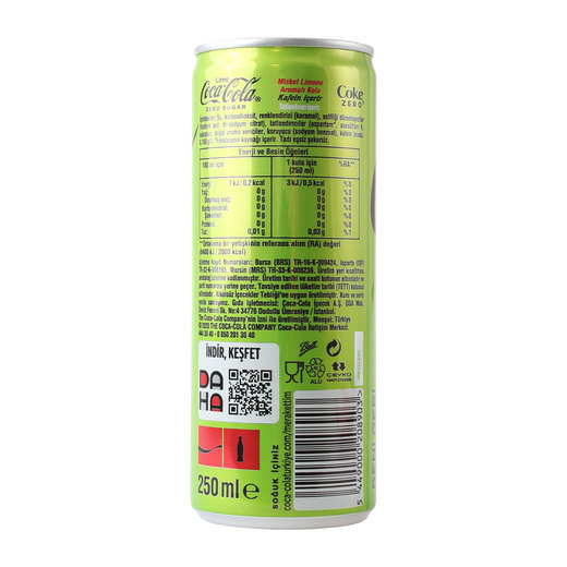COCA COLA Coca Cola Kutu Lime Zero 250 ml