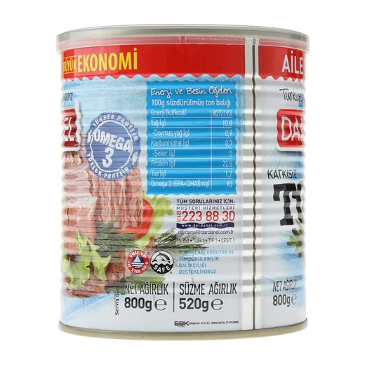 Türkiye'nin balık uzmanı'ndan Türkiye'nin ilk ton balığı konservesi. Bütün dilim, açık renkli. Balığın sunduğu sağlığa ulaşmanın en pratik yolu. Dardanel Ton tarifleriyle, mutfakta yarattığınız harikalara inanamayacaksınız.