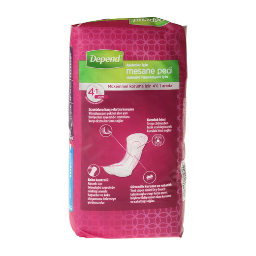 Depend sızıntıyı engeller,üstün koruma sağlar,ıslaklığı cildinizden hızla uzaklastırarak pedin merkezinde kilitler.