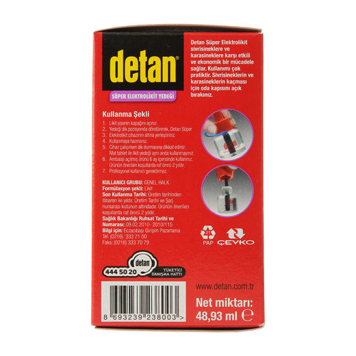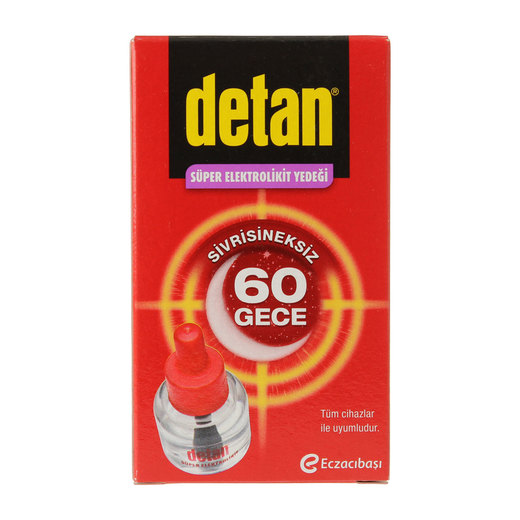 Detan Süper Elektrolikit yedek şişesi ile karasinek ve sivrisineklere karşı 60 gece koruma devam ediyor.Yedek likit şişeyi kapağını çıkartarak dik pozisyonda cihazınıza takın ve sivrisinekleri etrafınızdan nasıl uzaklaştığına şahit olun