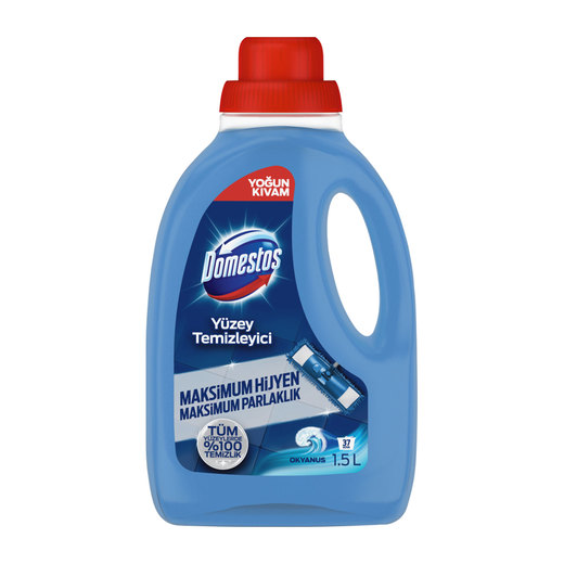 Mutfaklarda, banyolarda ve tuvaletlerde hijyenik gücü ile tercih edilen, güçlü ve kalıcı formülü ile öne çıkan Domestos, şimdi yeni Domestos Yüzey Temizleyici 1500 ml ile genel yüzey temizleyicilere yepyeni bir hijyen ve yer temizliği anlayışı getiriyor. Onun kıvamlı, yeni formülüyle evde ve işte, iç ve dış mekanlardaki bütün zeminlerde hem maksimum