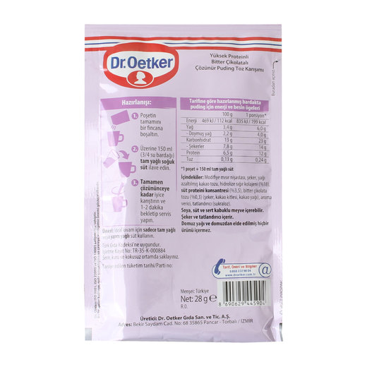 DR.OETKER Dr. Oetker Bitter Çikolatalı Bardakta Puding Yüksek Proteinli 28 gr