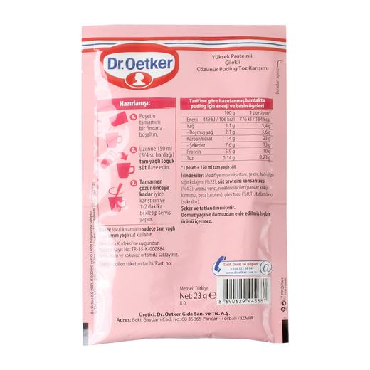 DR.OETKER Dr. Oetker Çilekli Bardakta Puding Yüksek Proteinli 23 gr