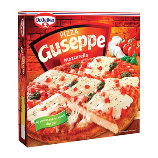 Dr.Oetker Guseppe Mozarella Pizza, domates ve enfes peynirlerin İtalyan usulü pizzada buluşması nedeniyle çok sevilen bir hazır pizzadır.Dr.Oetker Guseppe Mozarellayı sadece paketinden çıkarıp fırına vermeniz yeterli. Enfes bir çıtır hamur, yumuşacık erişim peynirlerle çok keyifli bir lezzet sunan bu ürün pratik bir öğün için biçilmiş kaftan.