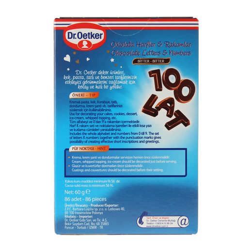 DR.OETKER Dr.Oetker Çikolatalı Harfler Rakamlar 60 gr