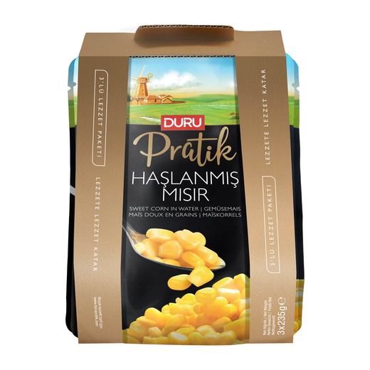 Sofralarınızı tamamlayacak kolaylıklar için en lezzetli mısırlar özenle seçilip haşlandı. Porsiyonluk paketler halinde sunuldu. Duru Pratik salatadan mezeye, pilavdan çorbaya her tarifinize ve bakliyat yemeklerinize lezzet ve hız katacak.