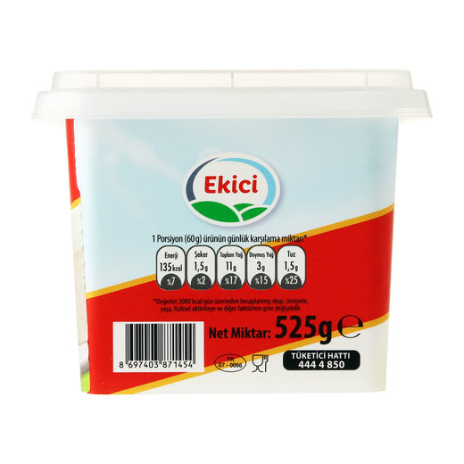 Ekici uzmanlığı ile yapılan beyaz peynirler Ekici’ye has üretim tekniği sayesinde “Lokum Kıvamına” sahiptir. %100 birinci kalite inek sütünden üretilen Ekici lokum kıvamında peynir,üretiminden sonra 15 gün bekleme odasında bekletilir.