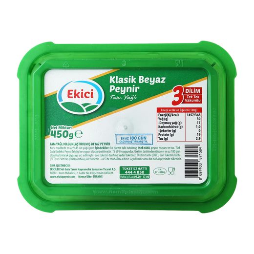 Ekici Beyaz Peynir uzun süre tazeliğini koruyarak sofralarınıza lezzet katan bir süt ürünüdür Sade olarak tüketilebileceği gibi börek poğaça ve omlet yapılarak da tüketilebilir. Kahvaltıların vazgeçilmez ürünü olarak Türk mutfağında özel bir yere sahip.
