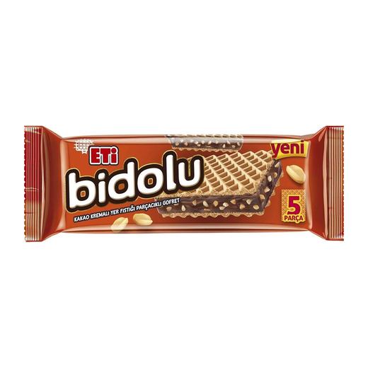 İki gofret yaprağı arasında dolu dolu fındık kreması ve gerçek fıstık parçacıkları. Eti Bidolu, gofret severlere yepyeni bir deneyim yaşatıyor. ki gofret yaprağı arasında Bidolu kremasıyla gofrette yenilik ve haz arayanlara Eti bidolu.