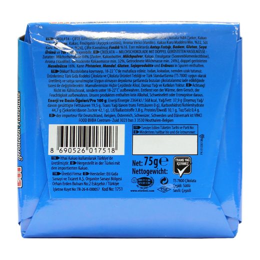 ETI Eti Çikolata Çifte Kavrulmuş Fındıklı Kare 75 gr