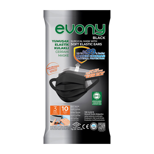 EVONY Evony Cerrahi Maske Siyah 10'lu