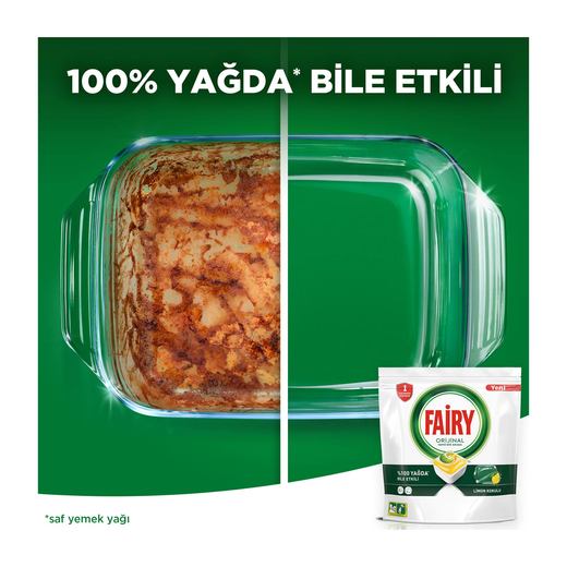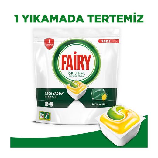 Fairy hepsi bir arada bulaşık makinesi kapsülü ile tüm inatçı lekelere son. Her zaman bulaşıklarınızın ve bardaklarınızın %100 tertemiz ve ışıl ışıl olmasını istiyorsanız Fairy hepsi bir arada tableti deneyin.