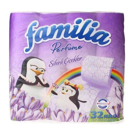 Familia tuvalet kağıtları dermatest onaylı parfümlü çeşidi ile banyolarınızda bahar havası estiriyor. Yine % 100 saf selülozdan ve yapay beyazlatıcı kullanmadan üretilen Familia parfümlü tuvalet kağıdı,ekstra yumuşak ve dolgun dokusu ile suyla ilk temasında dağılmıyor, ancak suya atılınca bir müddet sonra eridiği için klozetlerimizi de tıkamıyor.
