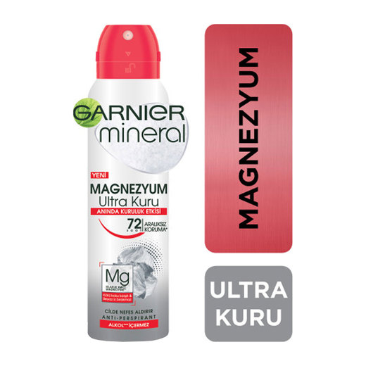 Garnier Mineral Magnezyum, Ultra Kuru, anında kurur, beyaz iz bırakmaz ve kötü kokuya karşı 72 saat aralıksız koruma sağlar. Banyodan çıkmışçasına temiz ve ferah hissettirir.Islaklık emici Magnezyum içeren formülün gücünü keşfedin.