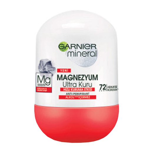 Garnier Mineral Magnezyum, Ultra Kuru, kötü kokuya karşı 72 saat aralıksız koruma sağlar. Cildinize nefes aldırır. Formülü doğal kayalardan elde edilen ve Talk'a göre ıslaklığı 4 kat daha fazla emen Magnezyum içerir.