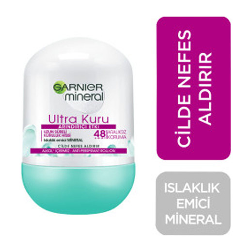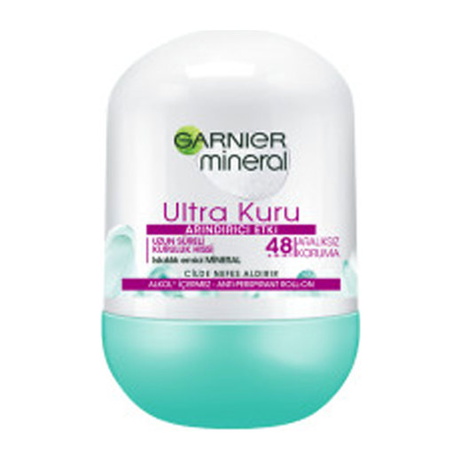 Garnier Mineral Ultra Kuru roll-on, uygulama sonrası hızla kuruyan, zorlayıcı koşullarda bile koltuk altına uzun süreli kuruluk hissi veren ilk 48 saat etkili anti-perspirant roll-on deodorant.Hafif, ferah ve uzun süre kalıcı kokusuyla size eşlik eder.