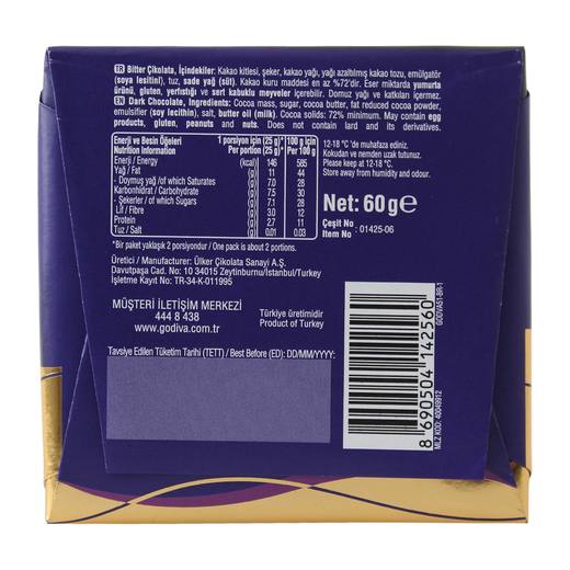 GODIVA Godiva Bitter Kare %72 Kare 60 gr