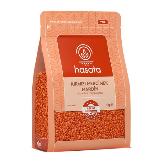 Hasata Kırmızı Mercimek, Mardin bölgesinde yetiştirilir. Her pakette aynı hasatın mahsulünü içerir. Kendine has lezzeti, dolgulu tane yapısı ve parlak rengi ile istediğiniz kıvamda tarifler hazırlamanızı sağlayan Hasata Mardin Kırmızı Mercimek potasyum,