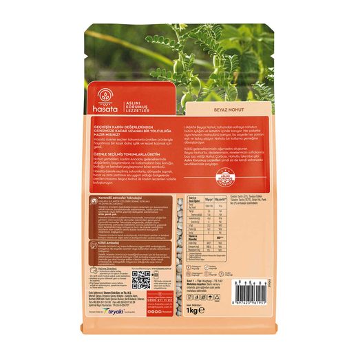 Hasata Beyaz Nohut, her pakette aynı hasatın mahsulünü içerir, bu sayede eşit ve aynı sürede pişer. Piştiğinde sosu için çeken ve ağızda hamur kıvamında dağılan dolgun ve beyaz iri tanelere sahip Hasata Beyaz Nohut aynı zamanda potasyum, protein, magnezyum, lif ve fosfor kaynağıdır.