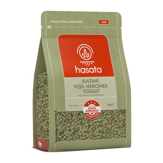 Her pakette aynı hasatın mahsulünü içerir, bu sayede eşit ve aynı sürede pişer. Parlak zümrüt yeşili renge ve pişerken dağılmayan dolgun tanelere sahip Hasata Yozgat Sultani Yeşil Mercimek aynı zamanda potasyum, protein, magnezyum, fosfor ve lif kaynağıdır.