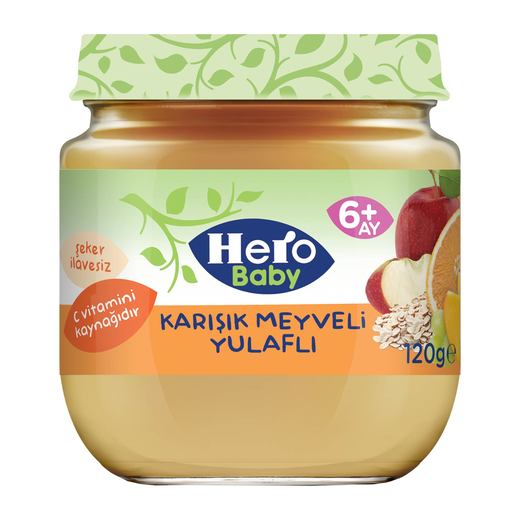 Hero Baby karışık meyveli yulaflı kavanoz mamasını 5. aydan itibaren bebeğinize yedirebilirsiniz. Yulaf bebeğinize güvenle yedirebileceğiniz uygun başlangıç tahıllarından biridir.Lif açısından oldukça zengindir ve bebeğinizin beslenmesinde önemli yere sahip olan tahıllı kavanoz mamasını yoğurtla da karıştırarak tüketebilirsiniz.