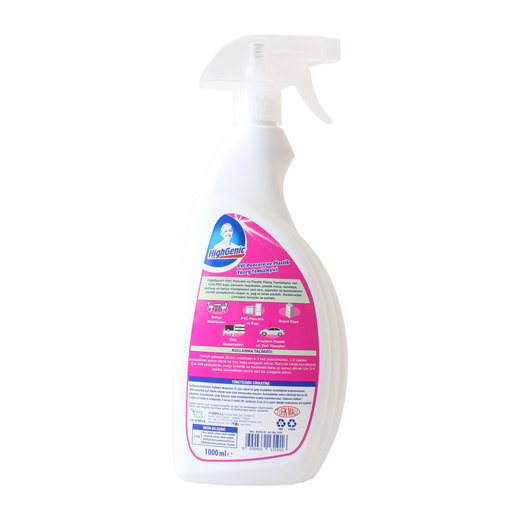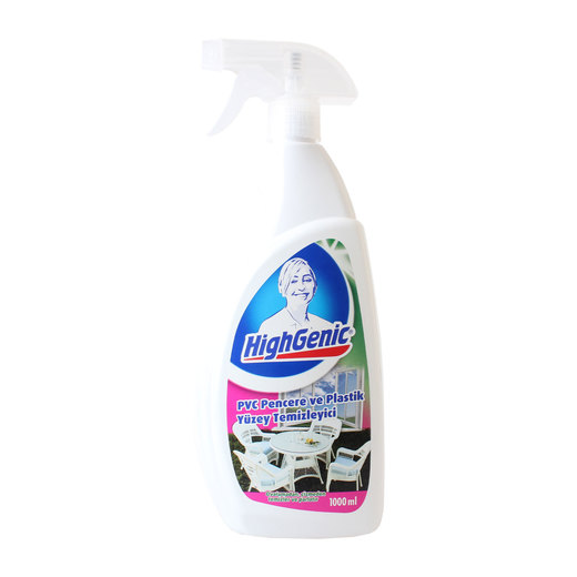 HighGenic PVC Pencere ve Plastik Yüzey Temizleyici, her türlü PVC kapı, pencere, duşakabin, plastik masa, sandalye, şezlong ve bahçe mobilyasının yansıra, aspiratör ve buzdolabının plastik yüzeylerinde oluşan is, yağ ve kiri mükemmel bir şekilde kolaylıkla temizler.