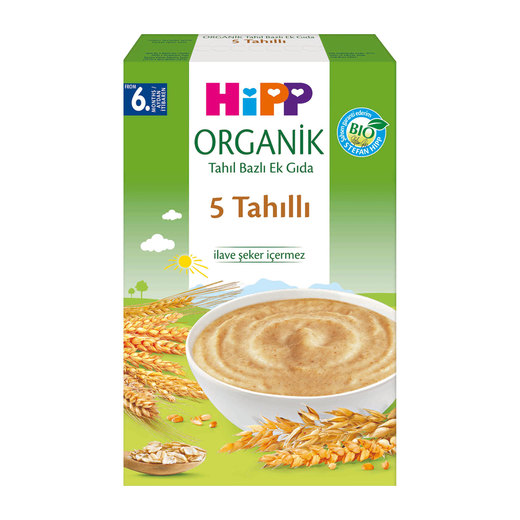 Hipp Organik 5 Tahıllı kaşık maması, Yüksek B1 vitamini içerir.İlave şeker içermez. Öncelikle anne sütü, anne sütü yetersiz ise bebek sütü ile hazırlanabilir. Bebeğin süt alerjisi varsa su ile de hazırlanabilir.