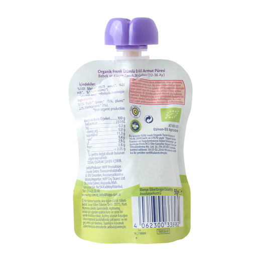 HIPP Hipp Organik Üzümlü Erik Elma Püresi 12-36Ay 90 gr