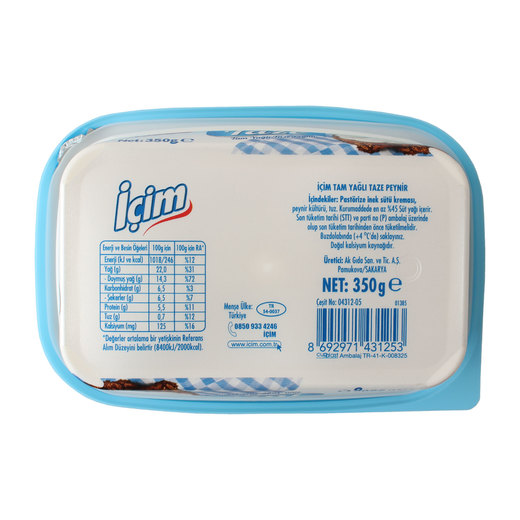 Adını içeriğindeki doğal taze süt kremasından alan İçim Taze Peynir, tamamen taze pastörize sütlerden elde edilen süt kremasının özel peynir kültürleri ile mayalanması sonucu elde edilir ve içerisinde koruyucu katkı maddesi içermez.