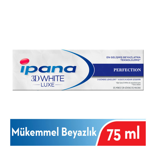 3 boyutlu beyazlık luxe perfection diş macunu ipana’nın en gelişmiş beyazlatıcı diş macunu.Perfection beyazlık diş macunu, diş lekelerini yok eden ve yeniden oluşumlarını engelleyen özel formülü ile gülüşünüzün güzelliğini arttırırken diş minenizi de korur.