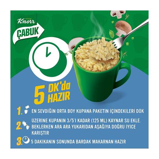 Bu çabuk makarna ile sadece karnını değil, damak zevkini de şımart! Lezzetin sınırlarını zorlamak ve açlığa anında çözüm bulmak artık çok kolay. Bu eşsiz lezzet, sadece 5 dakikada hazırlanır, böylece en yoğun günlerde bile hızlı bir çözüm sunar.