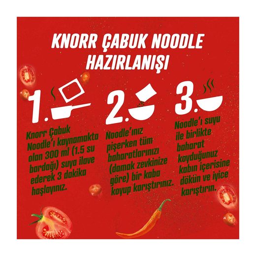 3 dakika içinde lezzete doymaya hazır mısın? Günün yoğun temposu arasında lezzetli ve pratik bir çözüm arıyorsan, Knorr Çabuk Noodle tam senlik!