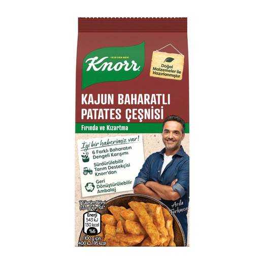 Knorr Kajun Baharatlı Patates Çeşnisi i, en güzel öğünlerinizi hazırlarken yardımcı olur. Knorr Kajun Baharatlı Patates Çeşnisi içindekiler ile patates kızartmaları, börekler ve fırın yemekleri gibi farklı birçok yiyeceğe lezzet katar.
