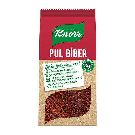 Tamamen doğal yöntemlerle kurutularak işlenen biberler, Knorr tarafından pul biber olarak satışa hazır hale getiriliyor.