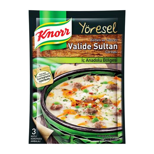 Serüveni saray mutfağında başlayan ve Knorr şeflerinin ustalığıyla günümüzde de sofralarımızda yer alan Valide Sultan çorbası.Havuç, bezelye ve patatesin, köftelerle buluştuğu ve terbiyeli kıvamıyla göz dolduran bu lezzeti keşfedin. Saray mutfağını evinize getiriyor.