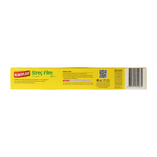 Koroplast streç film, gıdalarınızın saklanmasında hijyenik bir ortam sağlayarak dış ortamdan gelebilecek mikropların bulaşmasını engeller, kokuların ortama yayılmasını ve birbirine karışmasını önler.Gıdaların daha uzun süre taze kalmasını sağlar.