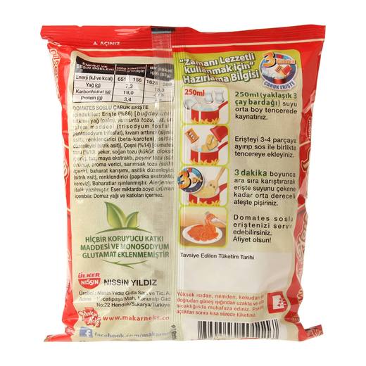 Ülker Makarneks domates soslu çabuk erişte , hızlı ve pratik şekilde hazırlanır. Tek ihtiyacınız olan sadece 3 çay bardağı sudur.