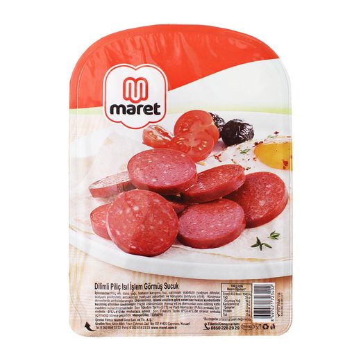 Maret dilimli piliç ısıl işlem görmüş sucuk.