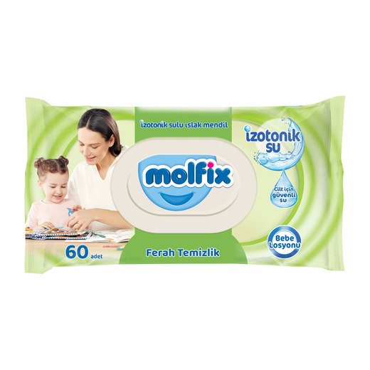 Molfix Bebe Losyonlu Islak Mendil yumuşak dokusu sayesinde bebeğinizin hassas cildini özenli bir şekilde temizler. Alkol ve paraben içermez.