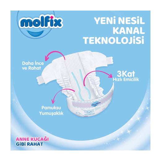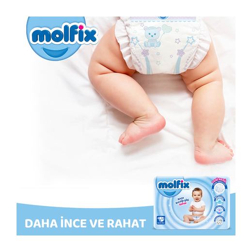 Molfix bebek bezi,daha elastik yan bantları,çift katlı sızdırmaz elastik bariyerler,rahat ve esnet orta lastik sistemi ile çocuklarınız güvende.