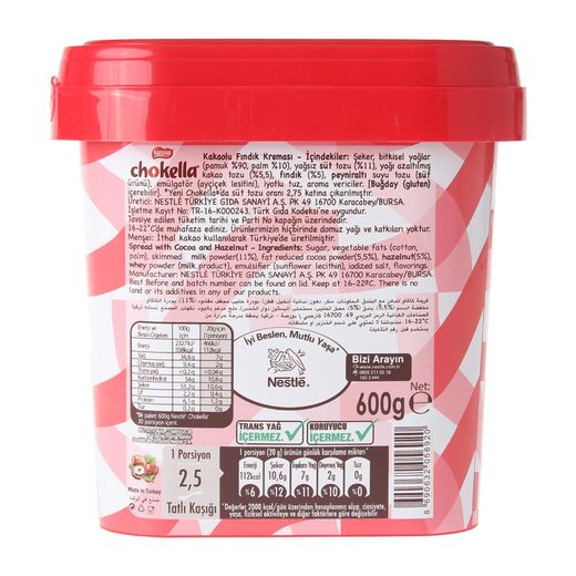 Nestle, yüz yılı aşkın tecrübenin getirdiği çikolata uzmanlığı ile ev dışı tüketim kanallarında ve profesyonel mutfaklar tadı damakta uzun kalan benzersiz bir çikolata deneyimi sunuyor. Farklı formatlarıyla, hotel, restarurant, cafe, ulaşım gibi bir çok farklı kanalda beğeniyle tüketilen Nestle Chokella trans yağ içermez.