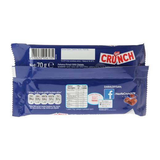 Nestle crunch Çikolata dopdolu pirinç patlakları ile efsane haline gelmiş bir çikolatadır. Senelerdir alıştığınız crunch çikolata lezzeti artık 70 gr lık ambalajı ile sizlerle.
